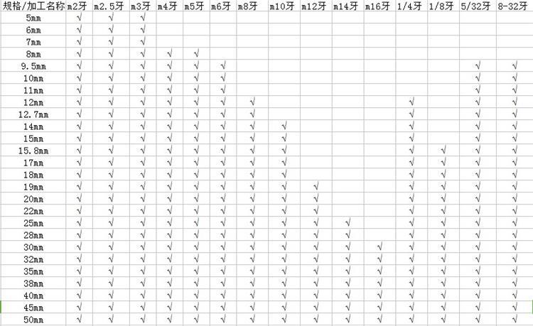 加工范圍: 攻牙m(xù)2 m2.5 m3 m4 m5 m6 m8 m10 m12 m14